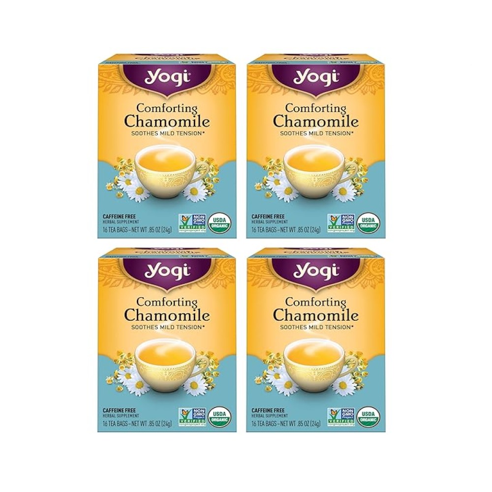 Organic Chamomile Tea Bags: Let your stresses drift away as you sip a cup of Yogi Comforting Chamomile tea; it’s caffeine-free, so you can enjoy a cup day or night