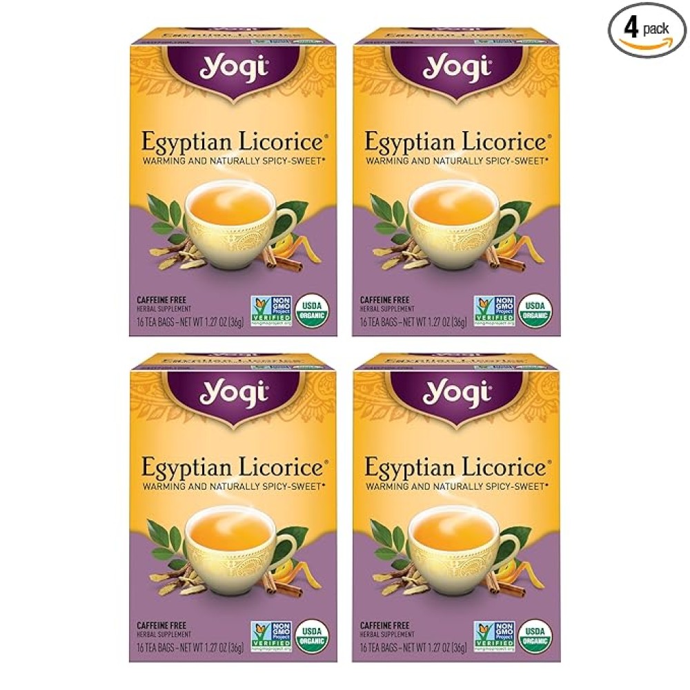 Egyptian Licorice Tea: Yogi licorice tea is a caffeine-free beverage made from natural, organic ingredients, including warming Cinnamon and zesty Orange Peel