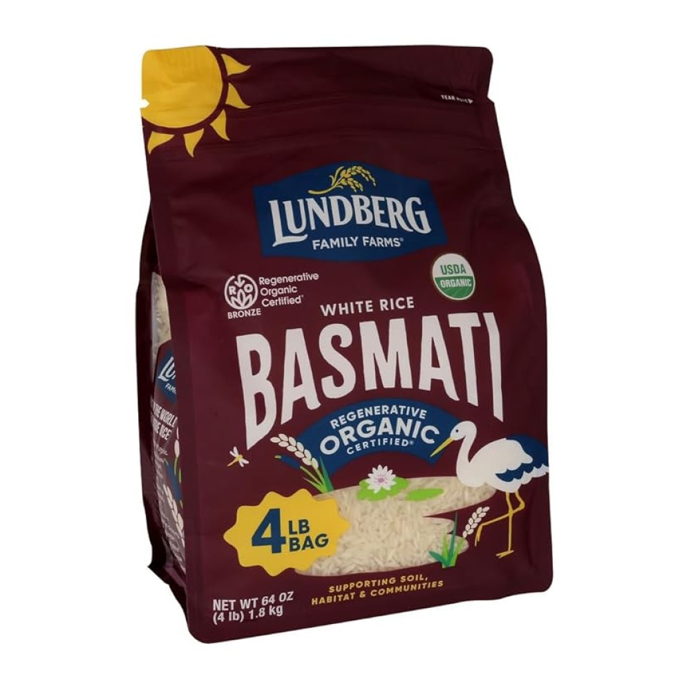 FOR YOUR PANTRY STAPLES: With so many versatile ways to enjoy Lundberg Basmati long-grain white rice in pilafs, stir-fries, biryani, and more, stock up on our resealable 4-pound bag (40 servings).