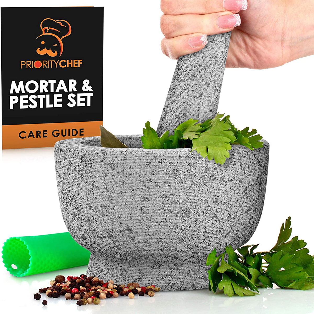 SMART SOLID STONEWARE: An authentic stone mortar and big spice pestle set features beautifully in your kitchen and creates a feeling of timelessness and connection to the earth and elements. 100% natural unpolished granite resists scratches and stains and keeps its original condition for years.